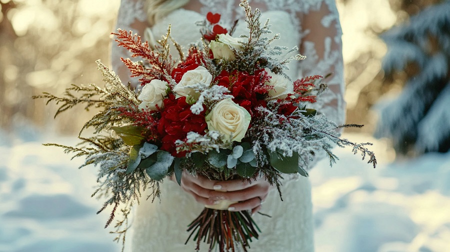 Most often, winter flowers exhibit gentle tones in white and cream, blush, and deep red to match winter themes and soothe the heart. Couples often find winter-wedding flowers adding grace very inconspicuously, a subdued sense of elegance, without making so much noise that it drowns the whole lot.